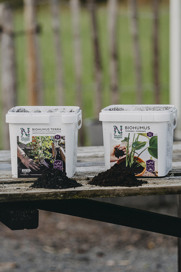 BIOHUMUS er rig på gavnlige jordbakterier og svampe, humus- og fulvussyre samt plantehormoner. Biohumus styrker også plantens modstandskraft over for sygdomme.