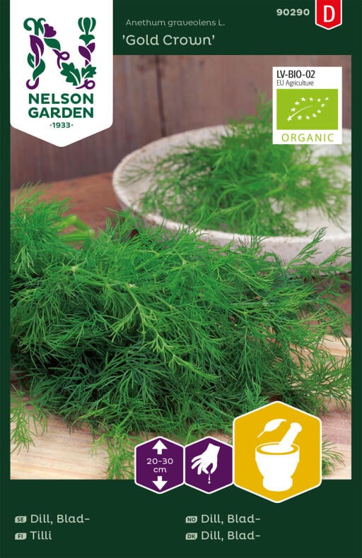Økologiske frø. En dildsort med aromatiske, mørkegrønne og fintfligede blade. Særlig velegnet til høst som bladdild. Dejlig på kogte kartofler eller som krydderi til fiske- og skaldyrssuppen. Skift voksested hvert år.