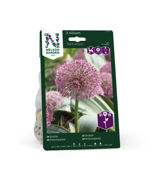 En lille kæmpe! Lille pga. den nette højde, en kæmpe med hensyn til den store rødlilla blomst, som kan være op til 20 cm. Bladene er brede og smukt gråskinnende. Storslået allium til potte. Anses for mindre appetitlig for rådyr, hare, kanin og mosegris.