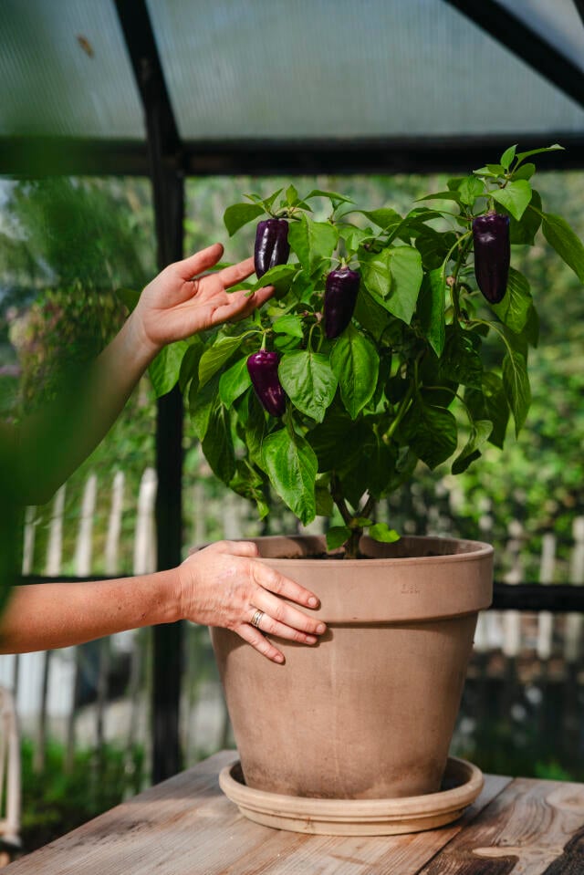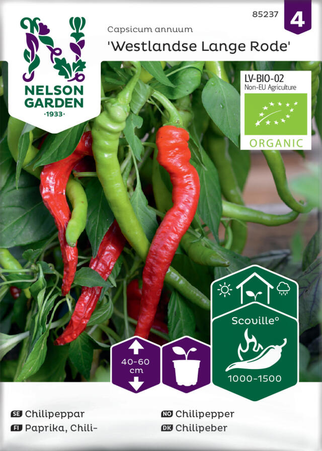 Stærk sort med smag af citrus. Begynd at høste ca. 4 mdr. efter såning. Forkultivér i såjord indendørs, med vækstbelysning. Lad spire i 25°C. Stil derefter i stuetemp. Plant om til en pr. potte i gødet jord, når planterne kan håndteres. Vask hænderne omhyggeligt, når du har håndteret frugterne.