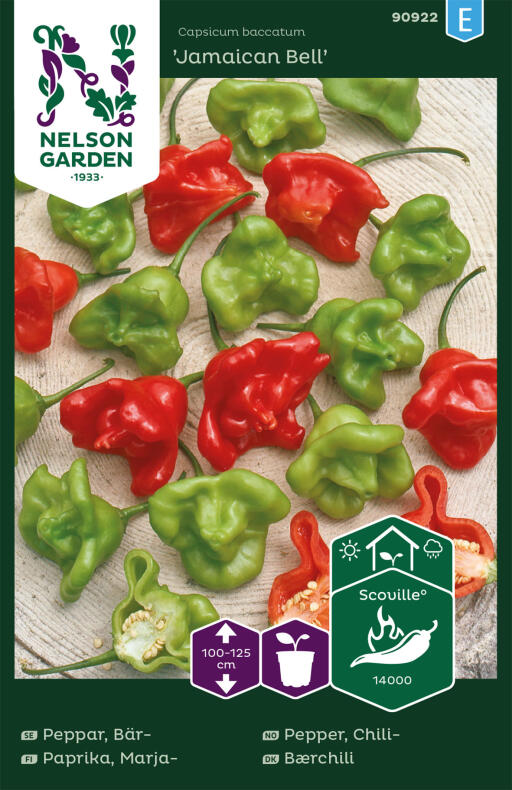 Mild sort med klokkeformede frugter. Begynd at høste ca. 5 mdr. efter såning. Forkultivér i såjord indendørs, med vækstbelysning. Lad spire i 25°C. Stil derefter i stuetemp. Plant om til en pr. potte i gødet jord, når planterne kan håndteres. Vask hænderne omhyggeligt, når du har håndteret frugterne.