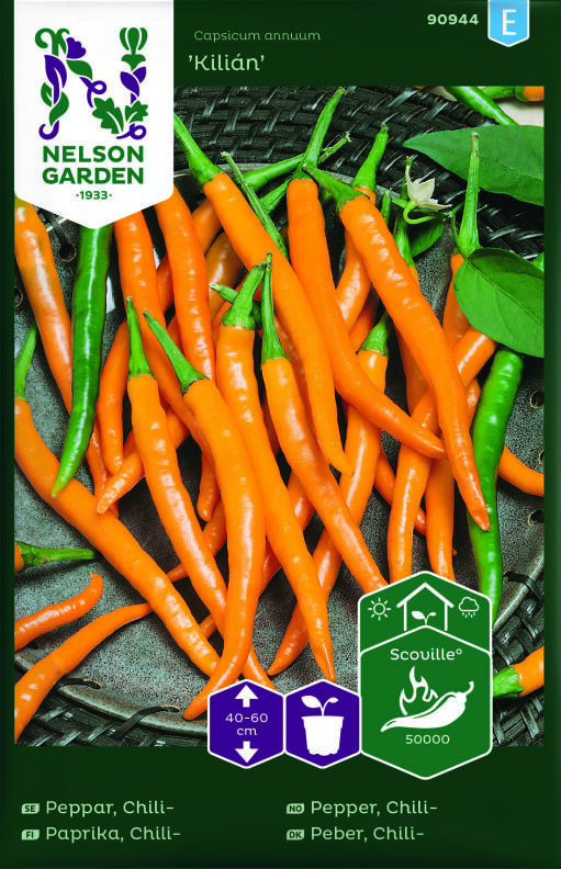 Busket plante, der kan have brug for plantestøtte. Frugten er af cayennetypen, 8 cm lang og med en tynd, skarp orangefarvet skal ved modning. Den kan spises på alle modningsstadier. Dyrkes bedst i drivhus eller på et solrigt og vindbeskyttet sted. Trives i velgødet og veldrænet jord. Vand regelmæssigt.
