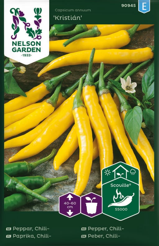 Skøn busket chiliplante med kanariegule frugter, som giver et stort udbytte. Frugten er ca. 8 cm og er velegnet til salsa og dressinger. Krydret og stærk smag. Dyrkes bedst i drivhus eller på et solrigt og vindbeskyttet sted. Trives i velgødet og veldrænet jord. Vand regelmæssigt.