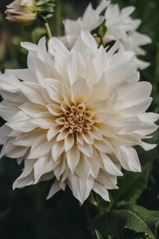 En stor skønhed, der er lys cremefarvet med sart tone af rosa, med pragtfulde blomster, såkaldte dinnerplates, som kan blive op til 22 cm i diameter. Fantastisk som solitær i beddet og en vidunderlig snitblomst, som er meget populær i brudebuketter.