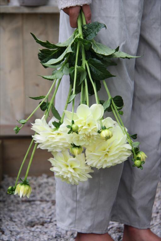 Blødt cremefarvet og dekorativ dahlia, der får mange små blomster. Er perfekt som snitblomst med sin lange stilk. Eller hvorfor ikke i en brudebuket?