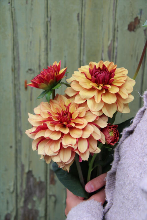 Spændende nyere sort af åkandedahlia med fine kontraster på blomsternes under- og overside. Det giver en tofarvet effekt, der virkelig pynter i buketten.