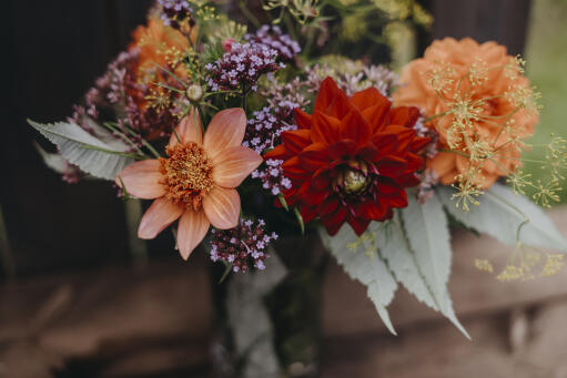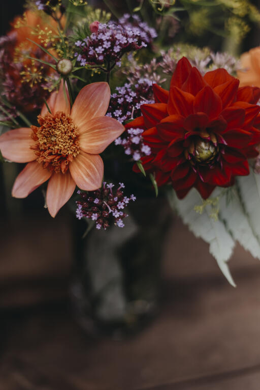 Klassisk dekorativ dahlia i en dybrød farve, som mørkner til lilla på kronbladenes spidser og lysner en smule ind mod det gyldne hjerte. En forstummende skønhed med rigelig blomstring og lang holdbarhed. Også udmærket som snitblomst.