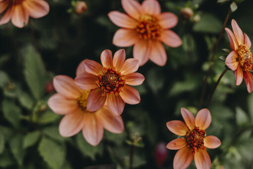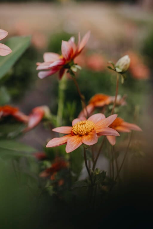 En af Linda Schiléns udvalgte favoritter. En enkel og dejlig romantisk, anemonedahlia i en varm lyserød orange nuance. Perfekt til at kombinere med andre farver og former i bedet eller buketten.