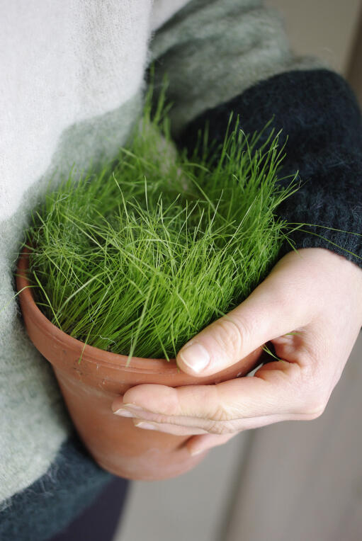 Dekorationsgræs af Timothe. Kan sås indendørs året rundt og passer fint til dekorative formål.