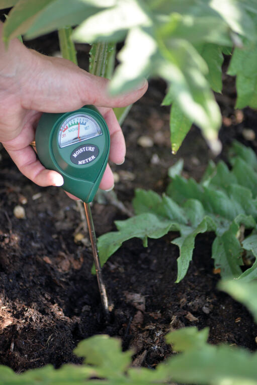 Denne måler er ideel til større krukker, men er også velegnet til blomsterbede. Den er nem at bruge, og der er ikke brug for batterier.