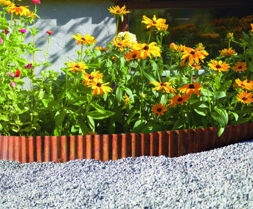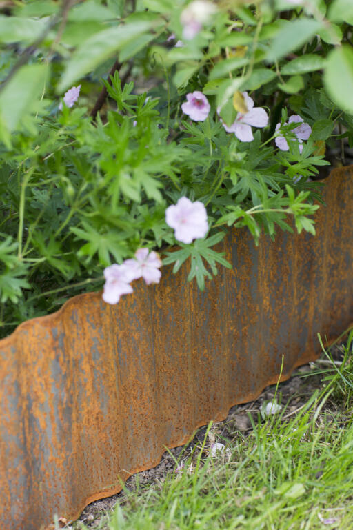 Brug denne plæneafgrænser i metal som afgrænsning omkring blomsterbede, træer eller andre beplantninger for at forhindre græsset i at sprede sig ind i disse områder. Denne plæneafgrænser har en rusten metalfarve, som gør den både praktisk og dekorativ (produktet er behandlet for ikke at blive misfarvet).