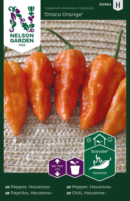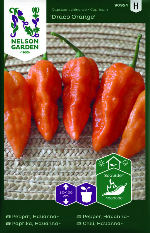 En hot chili med en dejlig orange farve og buttede, knudrede frugter. Sorten er en krydsning mellem Capsicum chinense og Capsicum frutescens. God smag med en tydelig styrke. Vask hænderne grundigt straks efter kontakt med frugten. Dyrkes bedst i solrigt, varmt drivhus. Kan have brug for plantestøtte. Gød og vand regelmæssigt.