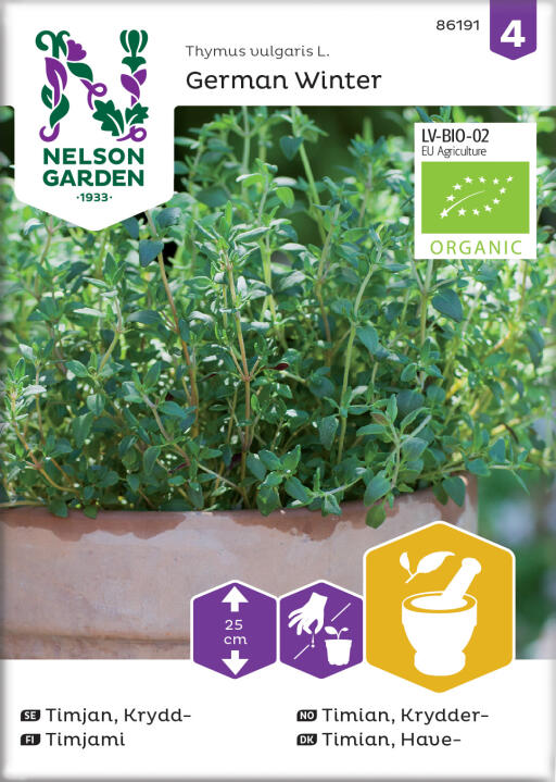 Stedsegrøn, flerårig krydderurt, som tåler tørke. Blade bruges friske eller tørrede. Høst fra ca. 10 u. efter såning. Forkultivér i såjord indendørs, med vækstbelysning. Lad spire i stuetemp. Stil derefter køligere. Et par planter pr. potte, når planterne kan håndteres. Kan direktesås på friland.