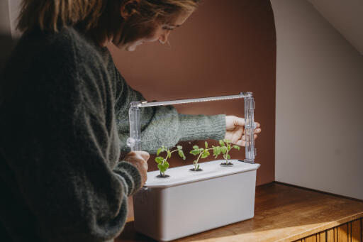 Jeg kan godt lide at variere det, jeg dyrker i Harvy i løbet af året, men jeg sår ofte den samme sort i hele kassen, eller sorter, der er klar til at blive høstet omkring på samme tidspunkt. For eksempel forskellige slags pluksalat og Pak Choi, der er klar til at blive høstet efter fire uger, eller forskellige krydderier som timian, persille og dild, som jeg begynder at høste efter cirka syv uger. Hvad angår basilikum, agurk og tomat, så sår jeg dem normalt separat
