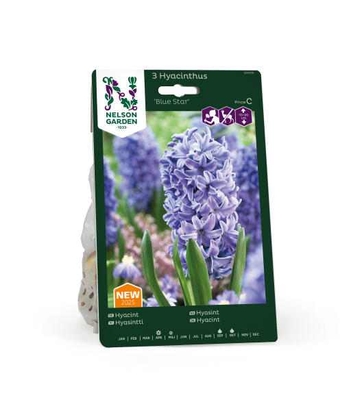 Hyacinten er en løgplante, der dufter skønt. Sorten "Blue Star" er en fantastisk duftende stor hyacint med intenst blå blomster på en stabil stilk. Hyacinter passer godt i bedet blandt buske og andre stauder, men er også pæne i potter, hvor du bedre kan mærke duften.