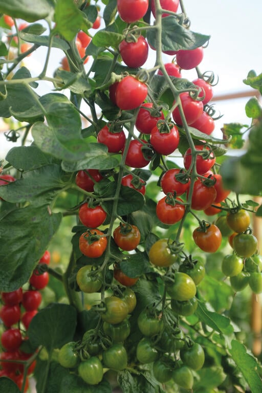 Kirsebærtomaten 'Lovertino' F1 danner smukke tomatklaser, fulde af skinnende røde tomater, som er fine at plukke og tage med ind i køkkenet. Da de smager sødt, er de perfekte som et sundt mellemmåltid eller i en salat.