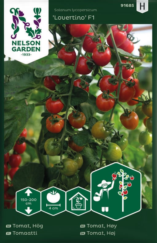 'Lovertino' F1 danner lange dekorative klaser af dybt røde tomater formet som jordbær. Tomaterne har en mør tekstur og smager dejligt sødt. Når de første tomater er modne, kan frugten høstes lidt efter lidt resten af sommeren og ind i det tidlige efterår.