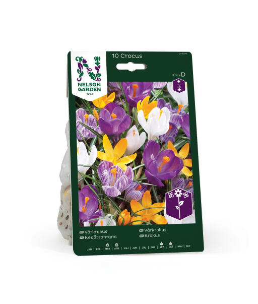 Dette er en herlig blanding af forskellige krokus i varierende farver. Et must i haven om foråret! Foruden i bede passer den godt i kanten af buske og hække og foran træer, hvor forårssolen skinner.