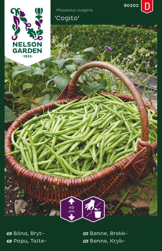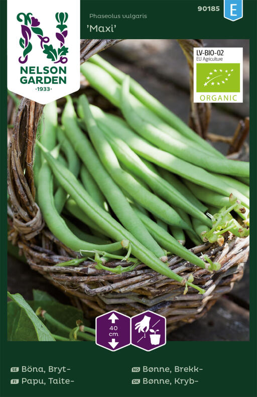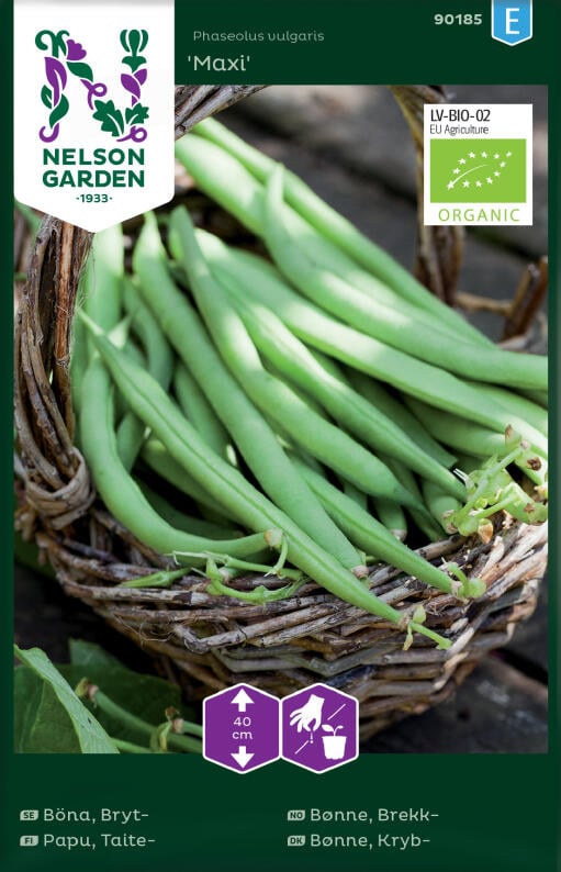 Økologiske frø. En tidlig sort af krybbønne, med flotte grønne bælge. Høstes løbende; lad ikke bælgene blive for store, ca. 18 cm lange er passende. Bælgene koges og spises hele, en rigtig delikatesse.