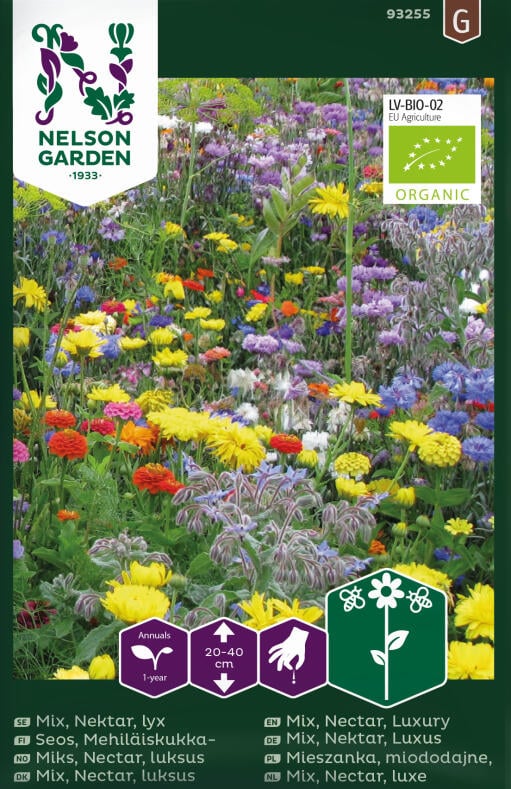 En blomsterblanding, der er lige så sund for bestøvende insekter som smuk for øjet. Blandingen indeholder bl.a. kornblomst, zinnia, hjulkrone og californisk guldvalmue. Trives i løs, mudret jord, men mange af sorterne er fordringsløse. Vand rigeligt ved tørring.
