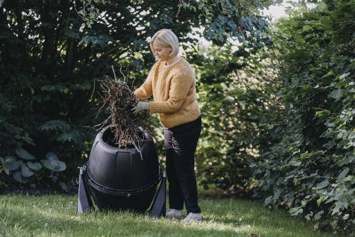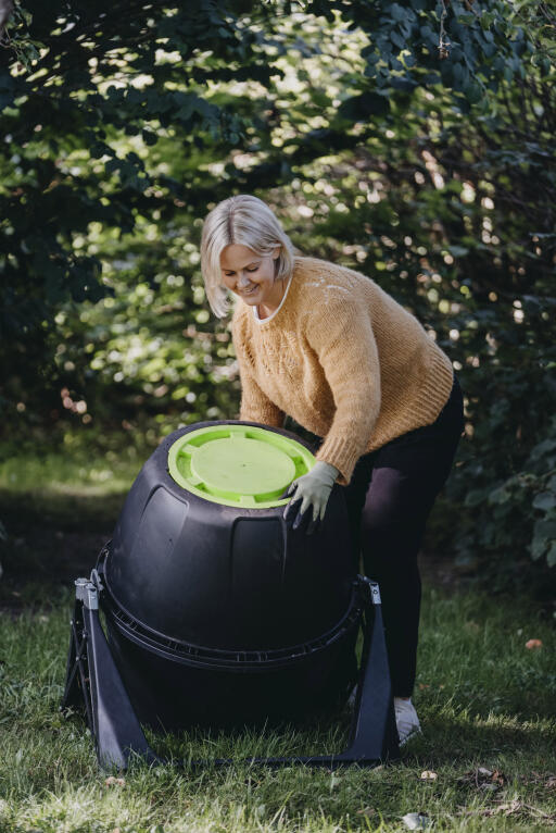 Effektiv kompostkugle – et praktisk og dekorativt tilbehør til haven. Kuglen står på et stativ, hvilket gør det nemt at vende komposten. Takket være luftningen inde i kuglen får du en hurtig kompostering inden for ca. 3-4 uger. Det er en enkel og miljøvenlig proces, hvor resultatet bliver et næringsrigt tilskud til havejorden. Kompostering er den naturlige måde at genbruge på. Alt det, du har dyrket, og som dør i slutningen af sæsonen, kan gavne levende dyr og mikroorganismer.