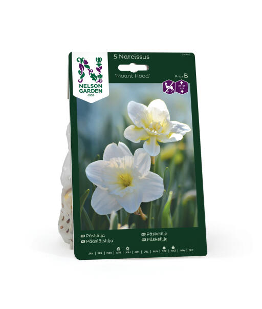 'Mount Hood' er en påskelilje, der hører til de enkeltblomstrende. Den har store blomster, der starter i gult og derefter i cremehvidt. Passer godt både i bede, blandt buske og under træer. Anses for mindre populær hos rådyr, hare, kanin og mosegris.
