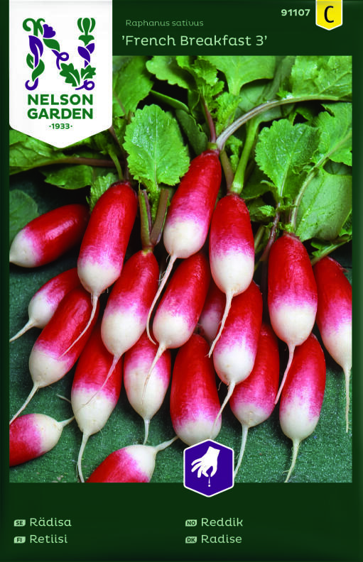 Populær radisesort, der udvikler aflange, sprøde radiser, røde med hvid spids. Skal høstes modne, har brug for masser af vand for at blive sprøde og velsmagende. Gentag gerne såningen hver anden uge for at få en jævn forsyning af spæde radiser. De vokser bedst om foråret og efteråret, så undgå at dyrke dem om sommeren, da de let blomstrer. Afdæk jorden med fiberdug for at undgå tidlige insektangreb.