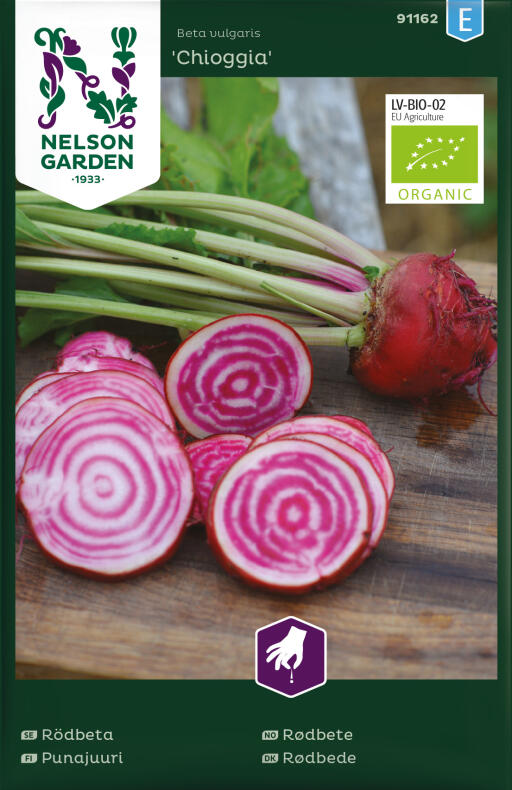 Økologiske frø. Bolsjestribet rødbede med sød smag. Gode at spise kogt eller at sylte. Kan også rives til råkost. Så ikke for tidligt; ved frost kan planten gå i blomst.