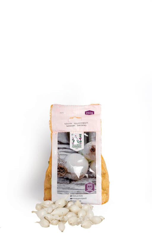 Sætteløg. Sølvløg har en glinsende hvid skal. Smagen er mild og lidt krydret. Lækker både tillavet og rå. Små løg passer til syltning til sylteløg. Varmebehandlet for en mere sikker høst.