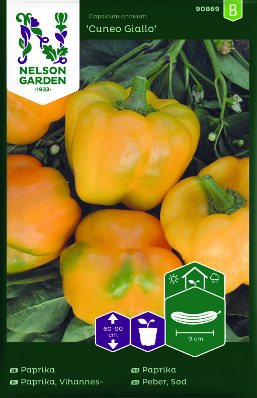 En herlig gul peberfrugt med mild, saftig smag. Dekorativ i salater med sin farve. Frugterne kan høstes grønne, så giver planten højere udbytte. Dyrkes i drivhus eller på beskyttede steder. Trives i næringsrig og porøs jord, vandes regelmæssigt. Fjern den første frugtsætning, det giver større udbytte. Overbruses ofte, det forhindrer insektangreb.