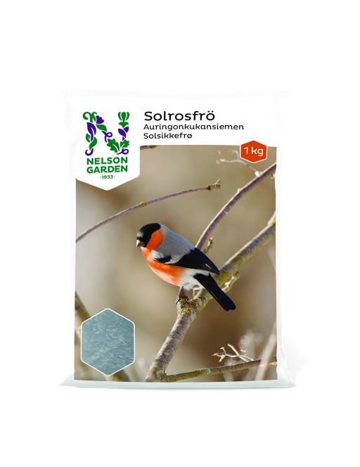 Frø til fodring af vilde fugle. Solsikkefrø er meget energirike og en særlig favorit for mange småfugler. Pose