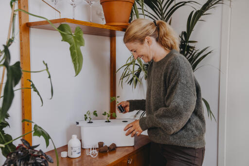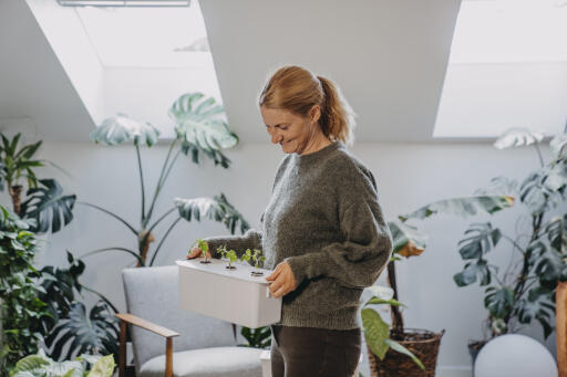 Jeg kan godt lide at variere det, jeg dyrker i Harvy i løbet af året, men jeg sår ofte den samme sort i hele kassen, eller sorter, der er klar til at blive høstet omkring på samme tidspunkt. For eksempel forskellige slags pluksalat og Pak Choi, der er klar til at blive høstet efter fire uger, eller forskellige krydderier som timian, persille og dild, som jeg begynder at høste efter cirka syv uger. Hvad angår basilikum, agurk og tomat, så sår jeg dem normalt separat