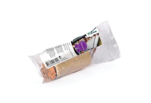 Energirigt fuglefoder, klar til at hænge op. Indeholder talg, jordnødder og melorm. Et 100 % naturprodukt med komposterbar snor og bundplade fra kokosnød.