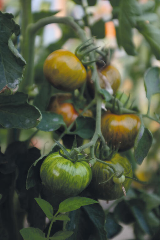 'Green Zebra' bliver høj og har derfor brug for plantestøtte. Fjern de små sideskud, det vil sige planten skal knibes.