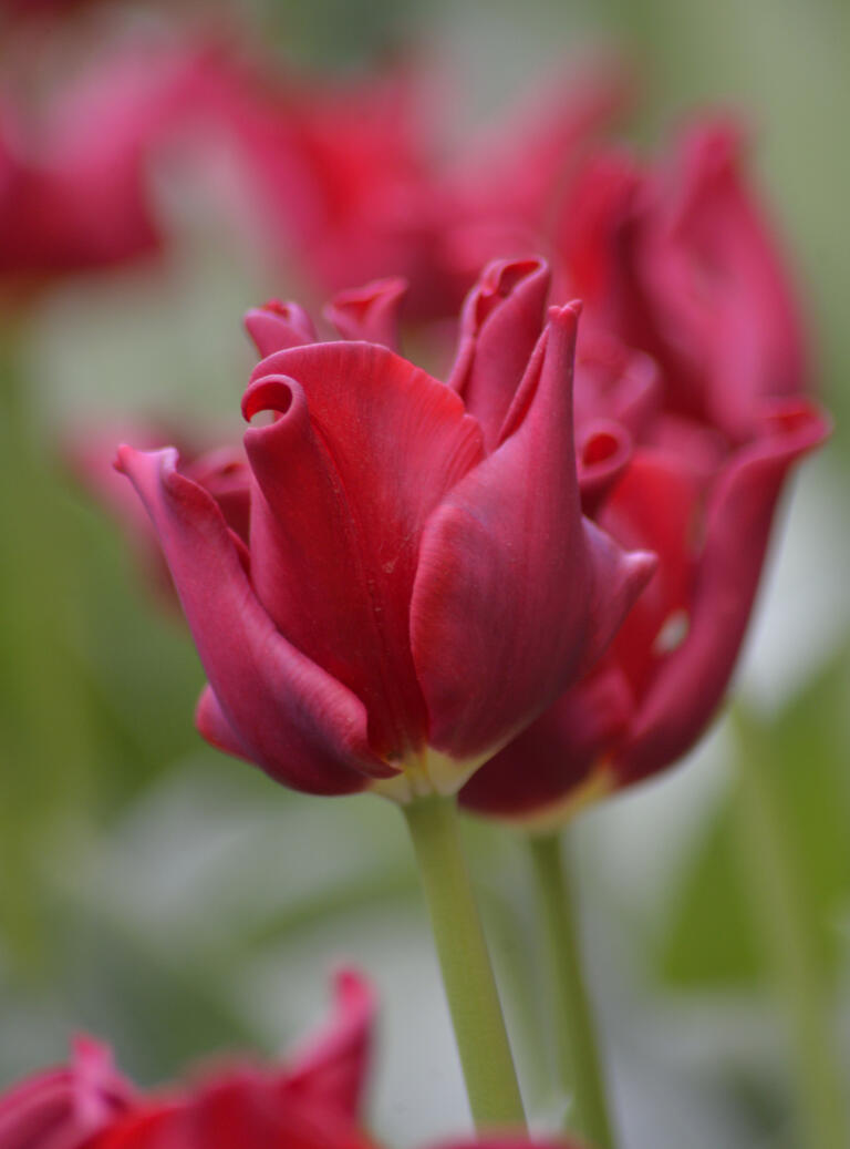 Rød og rebelsk – denne elegante triumftulipan bliver noget helt særligt i blomsterbedet med de kronelignende blomsterblade.