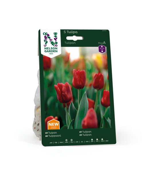 En klassisk og skøn rød tulipan på en stabil stilk med en enkel og smuk blomsterform. Blomsterne er relativt store, dejligt røde og holder længe. Også smuk som snitblomst i buketter.