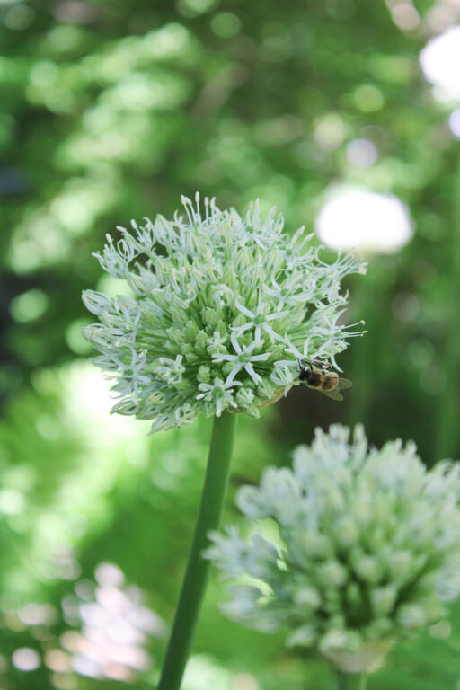 Pragtfuldt kæmpeløg med kuglerunde, cremehvide blomsterklaser, der svæver som snebolde i luften. Kuglerne, der består af små stjernelignende blomster, bliver ca. 15 cm i diameter. Anses for mindre appetitlig for rådyr, hare, kanin og mosegris.