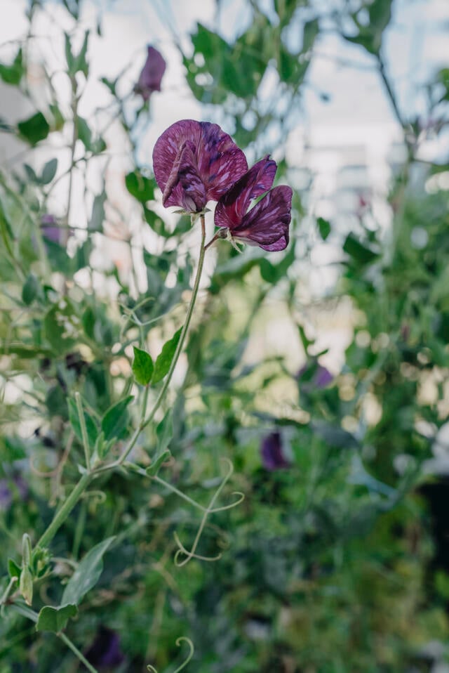 De første blomster kommer som regel midt på sommeren, og så er det bare om at finde saksen frem! Ærteblomster bør faktisk klippes ofte, for at planten skal producere flere blomster, og når vi klipper de blomster, som er sprunget ud, vil planten stimuleres til at producere nye knopper, som forlænger blomstringstiden betydeligt. Der er jo næsten ikke noget bedre end at begrave ansigtet i en luftig buket med ærteblomster, og med en håndfuld planter kan du fylde vaserne store dele af sommeren.