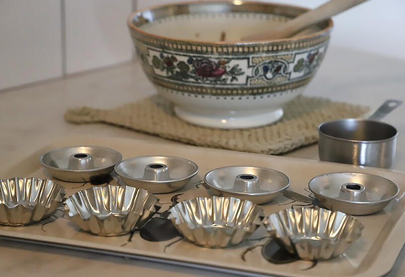 1. Sæt formene på en plade eller bakke med smørrebrødspapir. Smør dem med lidt madolie.