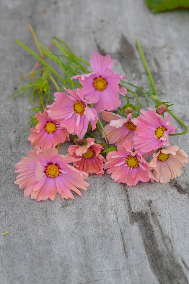 Tidlig morgen eller sen aften er det perfekte tidspunkt at høste dine blomster på, da temperaturen er køligere. Klip stilkene i en 45 graders vinkel med en skarp saks, for at hjælpe blomsterne med at absorbere vand mere effektivt.